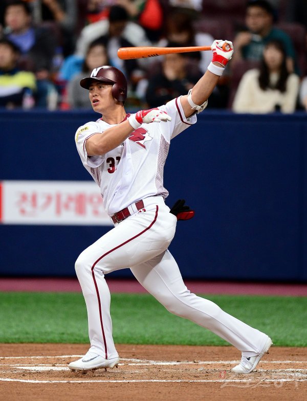 23일 서울 고척스카이돔에서 ‘2017 타이어뱅크 KBO 리그’ 롯데자이언츠와 넥센히어로즈의 경기가 열렸다. 2회말 무사 1루 넥센 허정협이 좌월 투런 홈런을 날리고 있다.