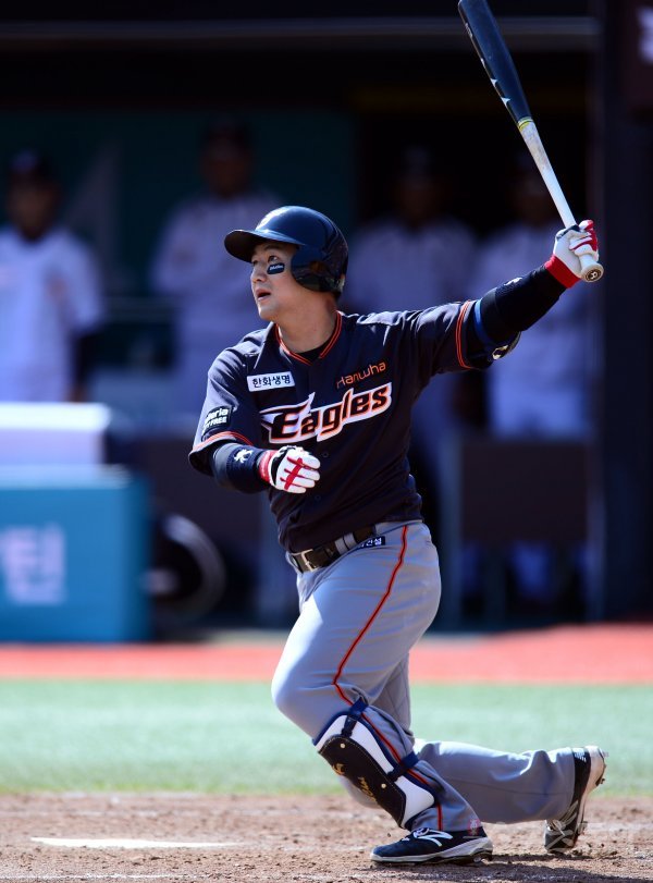 23일 경기도 수원 kt위즈파크에서 ‘2017 타이어뱅크 KBO리그’ kt 위즈와 한화 이글스의 경기가 열렸다. 4회초 1사 2, 3루에서 한화 최재훈이 2타점 2루타를 날리고 있다.