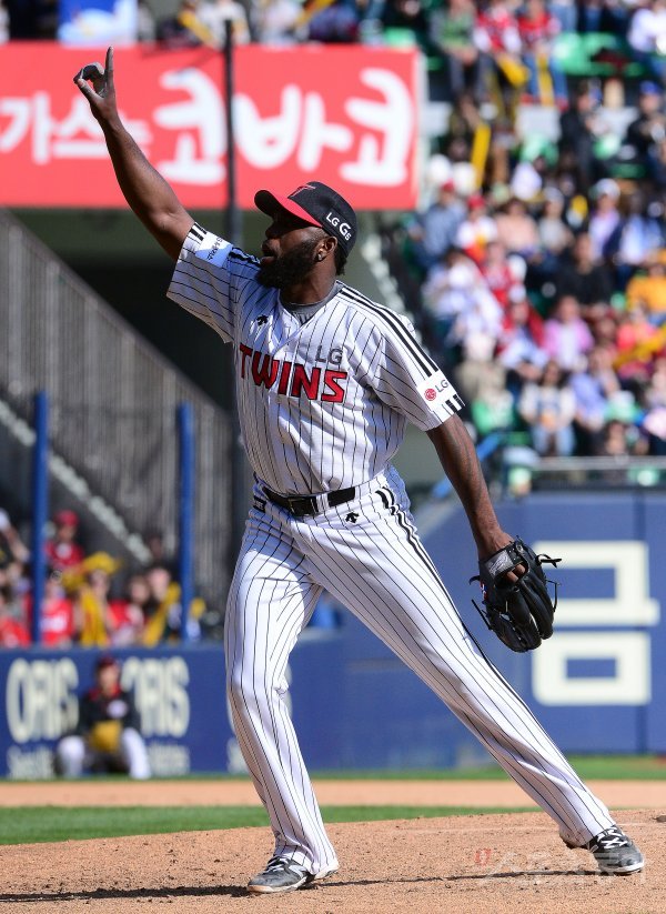 23일 잠실야구장에서 ‘2017 타이어뱅크 KBO 리그’ LG트윈스와 KIA타이거즈의 경기가 열렸다. 6회초 2사 1,3루에서 LG 소사가 KIA 신종길의 타구를 가리키고 있다.