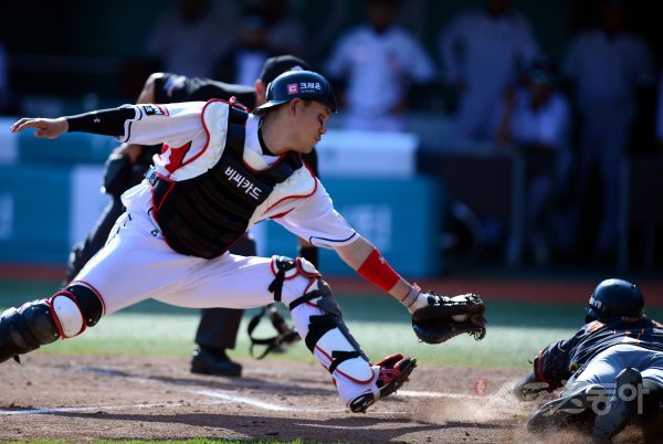 장성우 ‘태그가 늦었네’