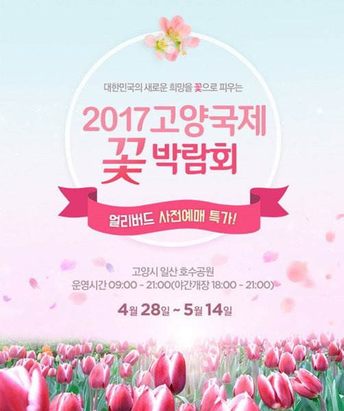 위메프가 26일까지 ‘2017 고양국제꽃박람회’ 입장권을 할인 판매한다. 사전예매가 8000원(현장구매가 1만2000원)에서 추가 즉시 할인이 적용된 7400원(1인 기준)에 내놨다. 구매 즉시 휴대폰으로 모바일 바코드 입장권이 발송돼 현장에서 별도의 입장권 교환 없이 입장 가능하다.