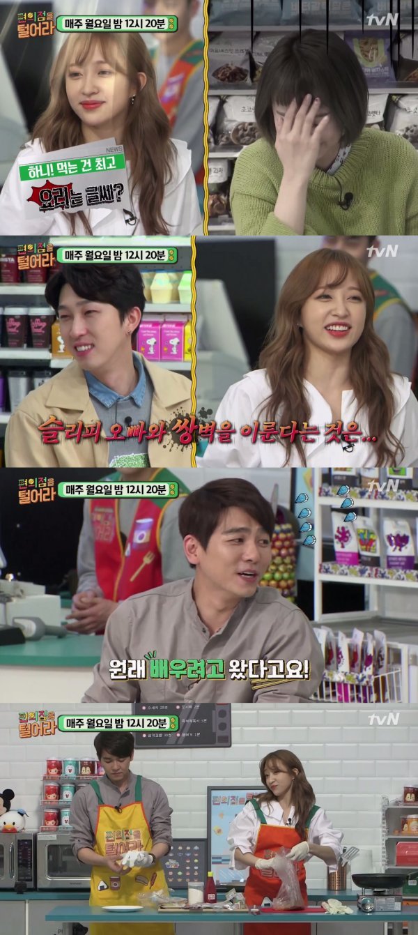 24일 방송되는 tvN ‘편의점을 털어라’ 7회에 하니·최민용·벤지가 출연한다. ‘편의점을 털어라’ 측에서 공개한 선공개 영상에서는 하니와 최민용이 함께 요리 실력을 뽐내는 모습이 드러났다.