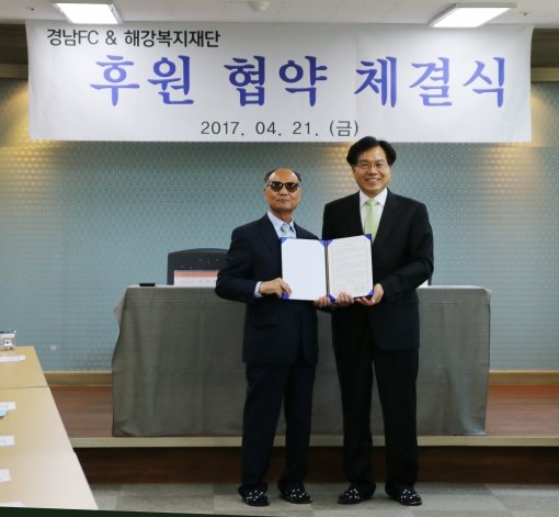 프로축구 K리그 챌린지 경남FC(대표이사 조기호)가 지난 23일 안산과의 홈 경기에서 해강복지재단(이사장 조학환)과 아름다운 동행을 시작하기로 했다.