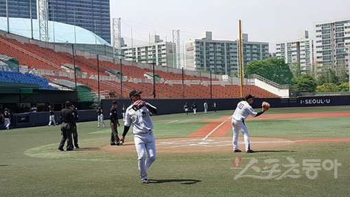 승부조작 사건으로 1월 KBO로부터 3년 실격징계를 받은 유창식이 모습을 드러냈다. 유창식은 24일 독립리그 개막전에서 저니맨 외인구단 소속으로 참가해 그라운드를 밟았다. 목동 | 고봉준 기자 shutout@donga.com