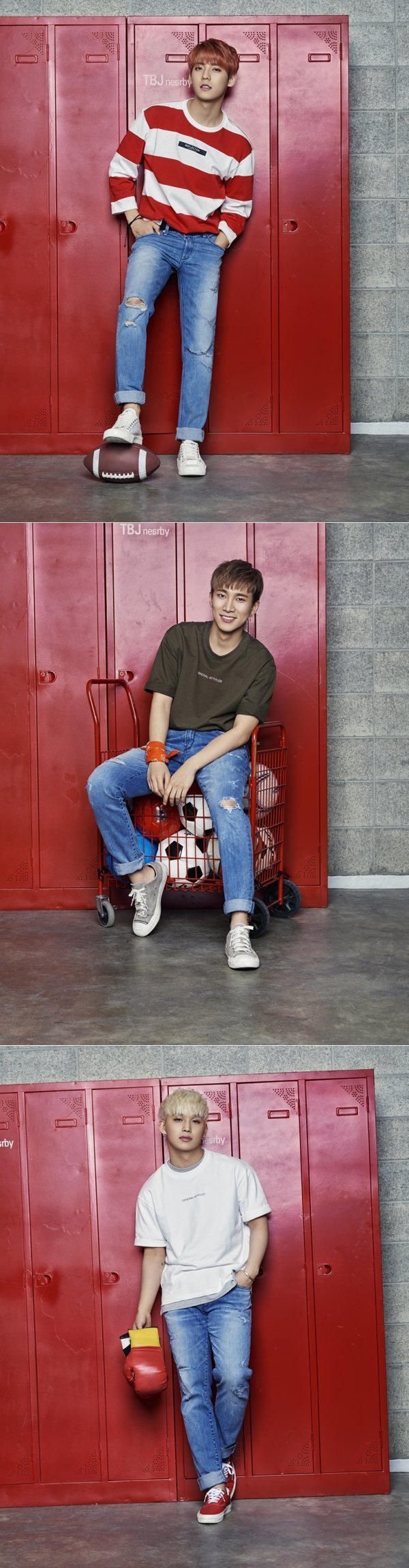 이번에 공개된 화보 속 비투비는 뉴욕의 고등학교 락커룸 컨셉에 맞춰 운동을 마치고 모인 서클 친구들의 모습으로 변신해 올 여름 편안하고 스포티한 분위기의 캐주얼룩을 완벽하게 소화했다. 특히, 밝은 컬러의 청바지에 각자의 개성이 돋보이는 스트라이프 티셔츠와 레이어드 5부 티셔츠를 감각적으로 스타일링했다.