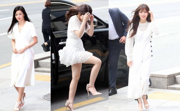 전지현은 롱 반팔 원피스로 단정함과 우아함을 동시에 드러낸 반면에, 전소미는 펀칭 미니 원피스와 샌들로 시원하고 상큼한 매력을 뽐냈다. 이선빈은 시스루 재질로 포인트를 준 점프수트를 입고 우월한 비율을 과시했다.