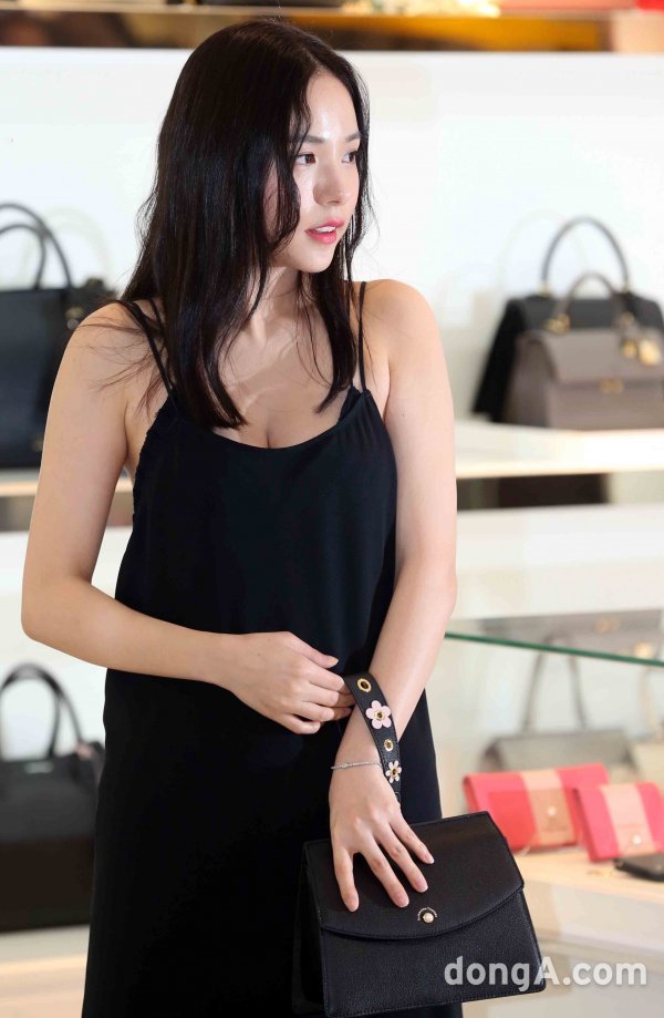 배우 민효린이 20일 오후 서울 중구 롯데백화점 본점 \'사만사 타바사\' 매장에서 열린 포토월 행사에 참석하고 있다.