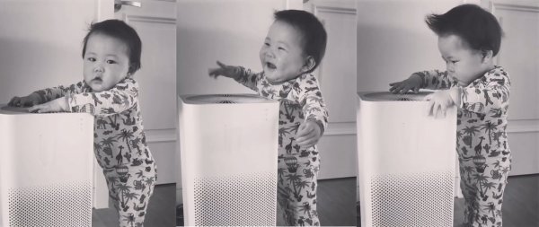 공개된 영상 속 김나영의 아들은 공기청정기에서 나오는 바람을 쐬고 있다. 시원한 바람에 신나 마냥 발을 구르며 웃다가도 바로 정색하는 모습. 이러한 반전 매력은 김나영의 아들이 엄마의 ‘개그 본능’을 닮은 것이 아니냐는 생각을 불러일으킨다.