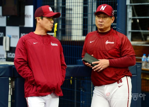26일 서울 고척스카이돔에서 ‘2017 타이어뱅크 KBO리그’ 넥센 히어로즈와 두산 베어스의 경기가 열린다. 경기전 넥센 장정석 감독과 심재학 수석코치가 이야기를 나누고 있다.