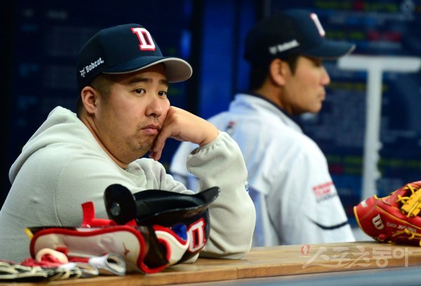 26일 서울 고척스카이돔에서 ‘2017 타이어뱅크 KBO리그’ 넥센 히어로즈와 두산 베어스의 경기가 열린다. 경기전 선발투수로 나서는 두산 유희관이 그라운드를 응시하고 있다.
