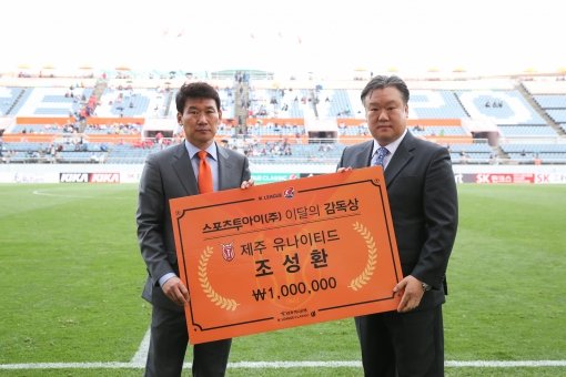 지난 22일 제주월드컵경기장에서 '3월 스포츠투아이 K리그 이달의 감독'에 선정된 제주유나이티드 조성환 감독의 시상식이 진행되었다.