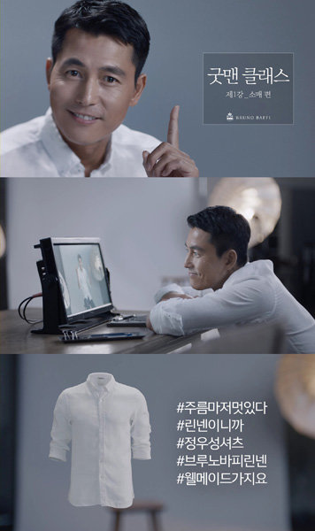 세정 ‘웰메이드’가 2017년 여름 시즌 새 광고 캠페인 ‘굿맨 클래스’를 공개했다. 3545세대 남성들의 남다른 패션 스타일링 연출을 위한 소매·단추·트래블웨어·쿨비즈 등 4가지 시리즈 형식으로 구성됐다. 3545세대 남성들이 공감하는 베스트 스타일링에 ‘웰메이드’ 모델 정우성의 여유와 당당함이 더해져 패션의 격을 높였다. 특히 영상 곳곳에 정우성의 외모 및 패션에 대한 자신감이 특유의 위트와 유머를 통해 자연스레 담겨 있어 웃음을 자아낸다.