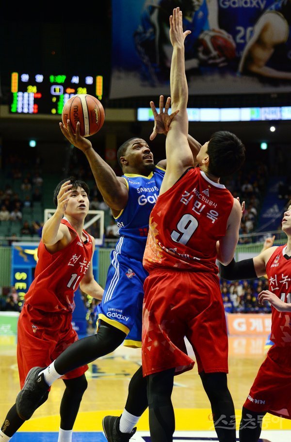 26일 서울 잠실실내체육관에서 ‘2016~2017 KCC 프로농구’ 챔피언결정전 3차전 서울삼성과 안양KGC의 경기가 열렸다. 1쿼터 서울삼성 크레익이 안양KGC 김민욱의 마크를 앞에 두고 레이업 슛을 하고 있다.