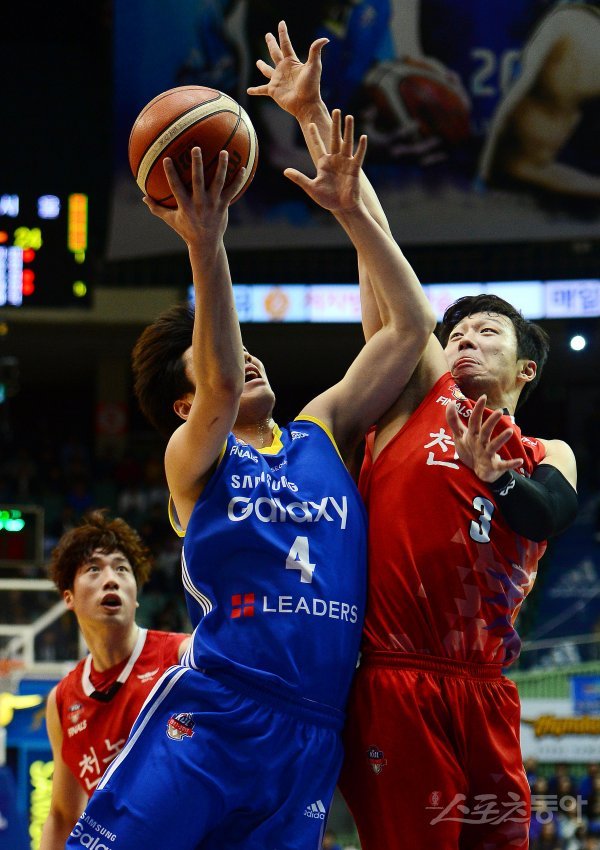 26일 서울 잠실실내체육관에서 ‘2016~2017 KCC 프로농구’ 챔피언결정전 3차전 서울삼성과 안양KGC의 경기가 열렸다. 1쿼터 안양KGC 이정현이 레이업 슛을 시도하는 서울삼성 천기범을 마크하고 있다.