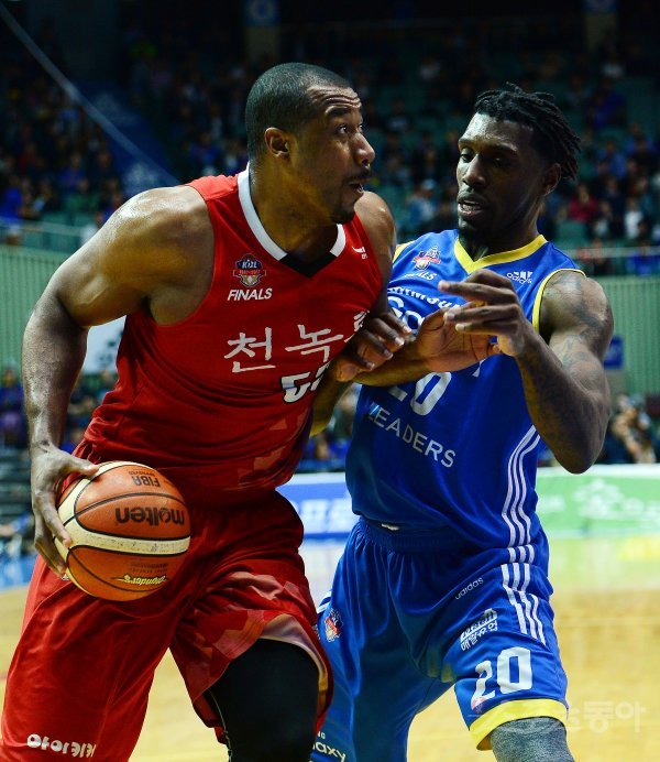 26일 서울 잠실실내체육관에서 ‘2016~2017 KCC 프로농구’ 챔피언결정전 3차전 서울삼성과 안양KGC의 경기가 열렸다. 3쿼터 안양KGC 사이먼이 서울삼성 라틀리프의 마크를 앞에 두고 돌파를 하고 있다.