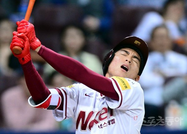 26일 서울 고척스카이돔에서 ‘2017 타이어뱅크 KBO리그’ 넥센 히어로즈와 두산 베어스의 경기가 열렸다. 8회말 1사 만루에서 넥센 이정후가 삼진아웃을 당한 뒤 아쉬워하고 있다.
