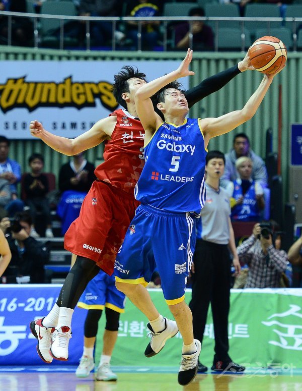 26일 서울 잠실실내체육관에서 ‘2016~2017 KCC 프로농구’ 챔피언결정전 3차전 서울삼성과 안양KGC의 경기가 열렸다. 4쿼터 서울삼성 임동섭과 안양KGC 이정현(왼쪽)이 볼 경합을 벌이고 있다.