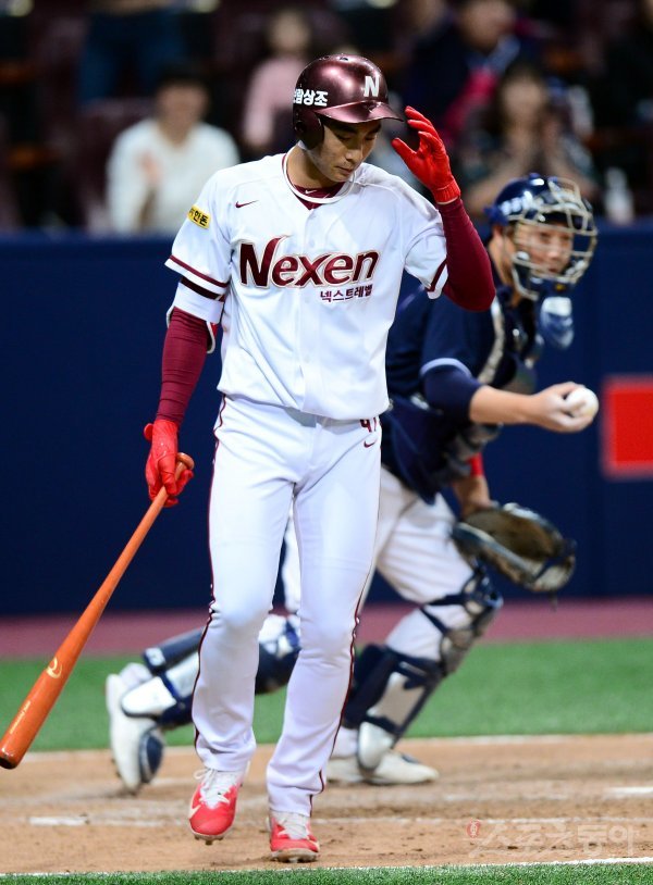 26일 서울 고척스카이돔에서 ‘2017 타이어뱅크 KBO리그’ 넥센 히어로즈와 두산 베어스의 경기가 열렸다. 9회말 2사 만루 3-3 상황에서 넥센 이정후가 삼진아웃을 당한 뒤 아쉬워하고 있다.