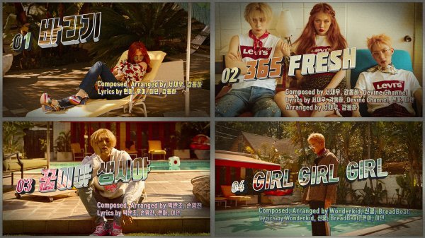 트리플 H의 데뷔 타이틀곡 \'365 FRESH\'는 1990년대를 연상시키는 신나는 펑크 스타일의 곡으로 \'1년 365일 항상 쿨 하고 멋지다\'는 의미를 담고 있다. 원초적이고 화끈한 트랙 위에 신나는 가사와 개성 넘치는 멤버들의 목소리가 더해져 신나고 유니크한 곡이다.