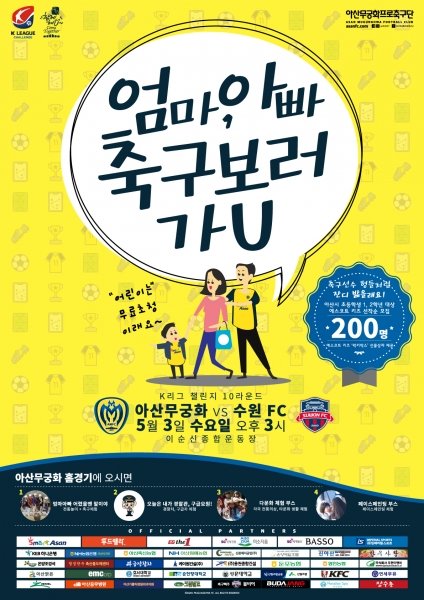 한편, 어린이를 위한 다양한 행사가 열릴 아산무궁화프로축구단 5월 3일 수원FC전 홈경기는 아산무궁화프로축구단 공식 홈페이지 혹은 티켓링크를 통해 티켓 예매를 하면 된다. 경기 당일에는 이순신종합운동장 티켓 부스에서 현장 구매가 가능하다.