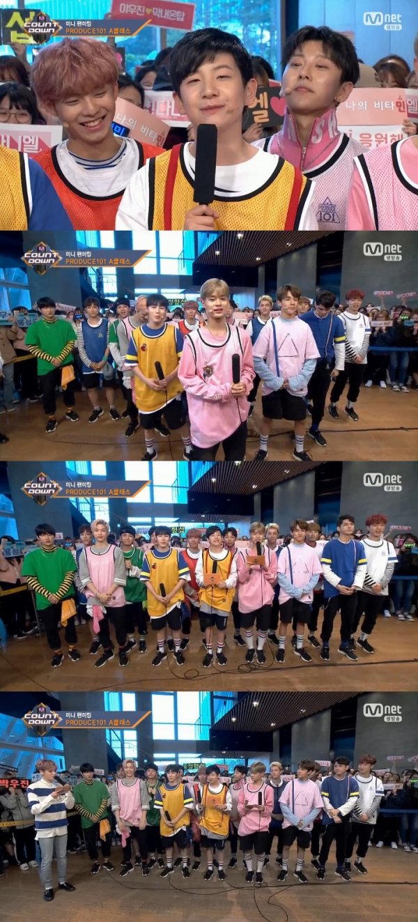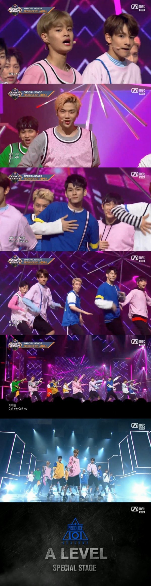 데뷔 그룹의 완성일까. Mnet ‘프로듀스101 시즌2’ A등급 연습생들이 27일 방송된 ‘엠카운트다운’ 무대에 올랐다. ‘프로듀스101 시즌2’의 메인 테마곡인 ‘나야 나’(PICK ME) 무대를 꾸민 것. 지난달 9일 방송된 ‘엠카운트다운’ 무대에서 다른 등급 연습생들과 함께 무대가 아닌 오롯이 A등급만의 무대가 펼쳐졌다.