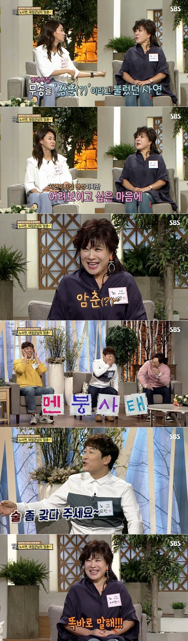 이승신이 ‘오빠 오빠 오빠빠’라며 취중 애교를 선보였다. 뒤이어 노사연이 애교를 선보였다. 노사연은 “연애시절 이무송을 ‘삼촌’이라 불렀다. 그런데 애교를 섞어 ‘암~춘~’이라고 불렀다”고 말해 출연진을 경악케 했다.