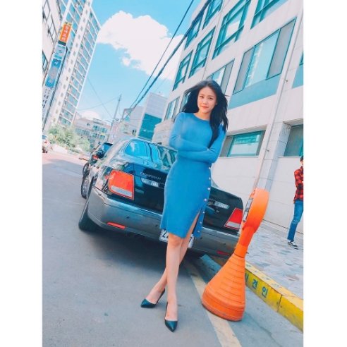 사진 속 혜정은 한 거리에서 하늘과 ‘깔맞춤’한 듯 한 파란색의 몸매가 드러나는 타이트한 원피스를 입고 있다. 바람이 불어와 날리는 그녀의 머릿결과 사진의 파란 색감이 보기만 해도 시원해진다.