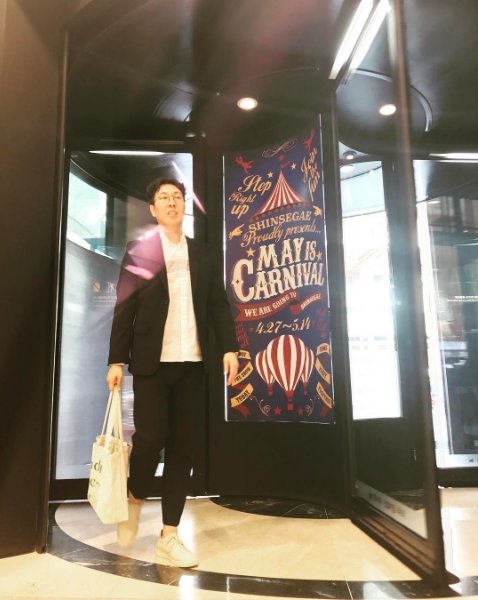 김영철은 28일 자신의 인스타그램에 사진 한 장을 게재했다. 공개된 사진 속 김영철은 한 건물의 회전문을 통해 내부로 들어서고 있는 모습.