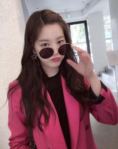 사진 속 이유비는 눈에 띄는 핑크색 자켓과 동그란 선글라스를 착용하고 있다. 한 손으로는 선글라스를 내리고 카메라를 새침하게 쳐다보고 있는 모습이 시선을 끌었다.