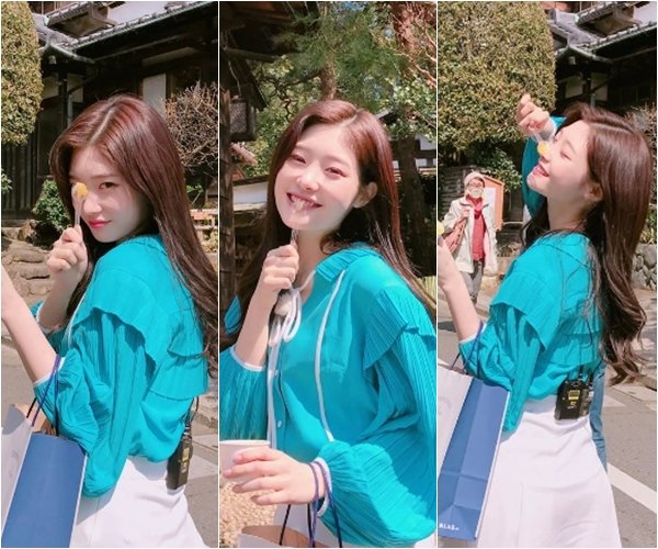정채연은 28일 자신의 인스타그램에 일본 도쿄의 거리에서 찍은 사진을 공개했다. 사진에는 정채연이 카메라를 향해 애교를 부리는 모습이 담겨 있다. 투영한 피부와 청순한 미모, 화보 같은 분위기가 감탄을 자아낸다.
