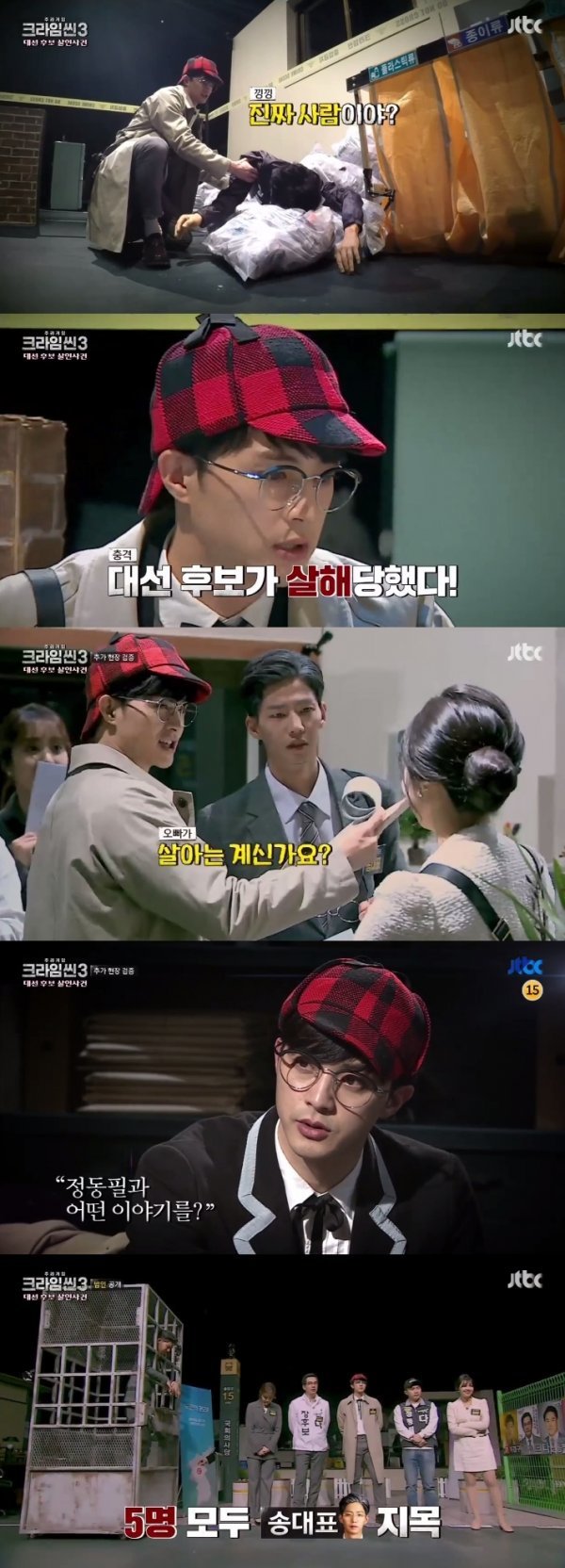 28일 오후 9시에 첫 방송된 JTBC ‘크라임씬 3’에서 탐정 역할을 맡은 김지훈이 첫 에피소드인 ‘대선 후보 살인 사건’의 다섯 용의자들과의 심리전 끝에 미궁 속에 빠진 사건을 해결할 단서를 찾아내며 범인을 밝혀낸 것.