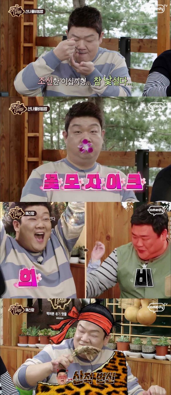 더불어 그는 식후 음식 묻은 입에 꽃을 무는 자체 꽃 모자이크를 선보이기도 하고, 유머 1번지를 연상케 하는 추억 드립을 날리는 등 틈을 놓치지 않는 깨알 개그로 방송에 재미를 더했다.
