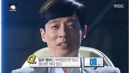 이날 유재석은 거짓말 탐지기를 진행하던 중 '일부 멤버가 바뀌었으면 하고 생각한 적이 있냐'는 질문을 받았다. 이에 "예"라고 답했다. 이는 진실로 판명됐다.