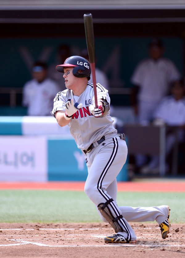 30일 수원kt위즈파크에서 ‘2017 타이어뱅크 KBO 리그’ LG트윈스와 kt위즈의 경기가 열렸다. 2회초 1사 2루 LG 양석환이 1타점 적시타를 치고 있다.