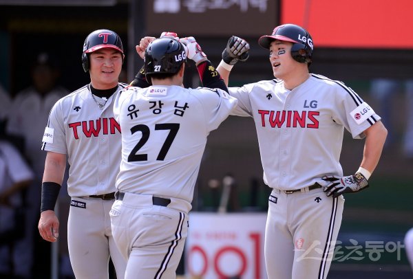 오지환-양석환, ‘(유)강남이 홈런 축하!’