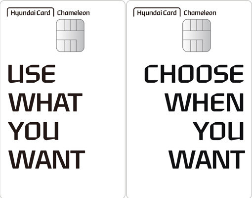 현대카드가 ‘카멜레온’을 내놨다. 여러 장의 카드를 한 장에 담아 자유롭게 혜택을 이용할 수 있는 게 주요 골자. 현대카드 앱에서 자신이 보유한 현대카드 중 ‘카멜레온’으로 설정해 이용하면 된다. 바라보는 위치에 따라 ‘카멜레온’처럼 변하는 디자인도 눈에 띈다. 오른쪽에서 봤을 때는 ‘CHOOSE WHEN YOU WANT(당신이 원할 때 선택하세요)’라는 문구가, 왼쪽에서 봤을 때는 ‘USE WHAT YOU WANT(당신이 원하는 것을 사용하세요)’라는 문구가 나타난다. 현대카드 측은 “현대카드의 다양한 혜택을 쉽고 편하게 즐길 수 있도록 만든 상품”이라며 “고객의 편의성을 한층 높일 것으로 기대된다”고 했다.