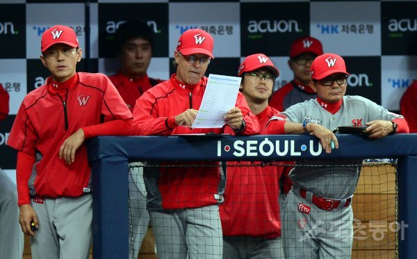 7일 서울 고척스카이돔에서 ‘2017 타이어뱅크 KBO리그’ 넥센 히어로즈와 SK 와이번스의 경기가 열렸다. SK 힐만 감독이 기록지를 살펴보고 있다.