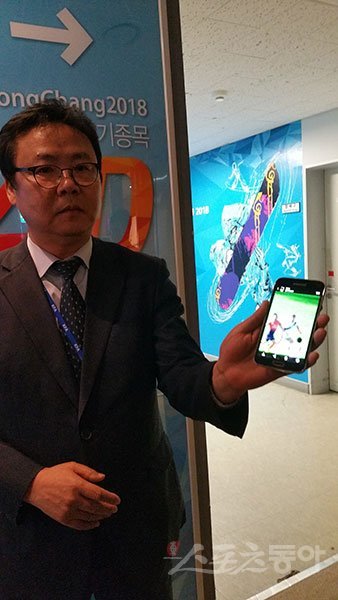 인천 김석현 단장이 7일 강원전에서 1-2로 역전패한 뒤 오심 논란을 낳은 장면들이 담긴 자신의 휴대폰을 취재진에게 보여주며 억울함을 호소하고 있다. 평창 | 김도헌 기자 dohoney@donga.com