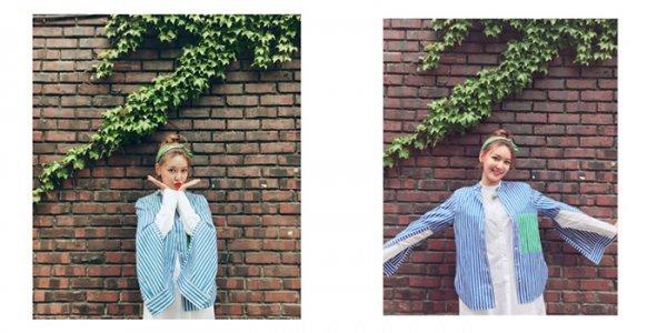 사진 속 수영은 초록색 헤어밴드로 포인트를 주고 또 새빨간 입술로 또 하나의 포인트를 줬다. 수영은 머리를 올려 묶어 예쁜 두상을 드러내기도 했다.
