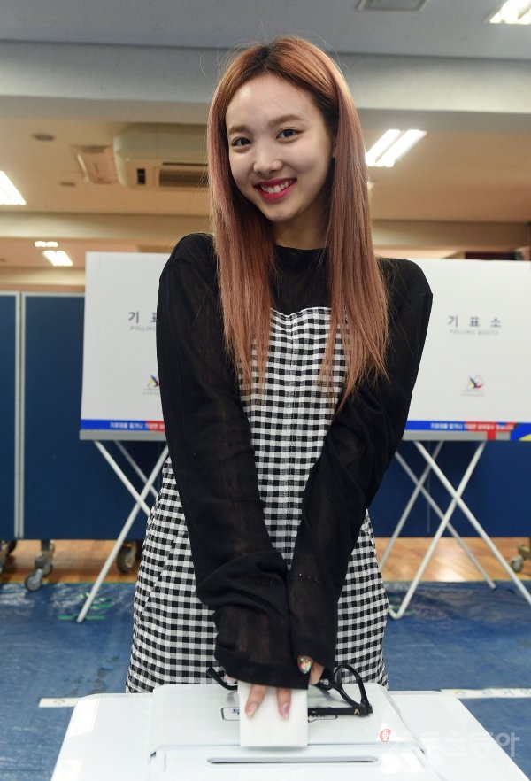9일 서울 강남구 청담초등학교에 마련된 청담 제2투표소에서 트와이스 나연이 제19대 대통령 선거 투표를 하고 있다.