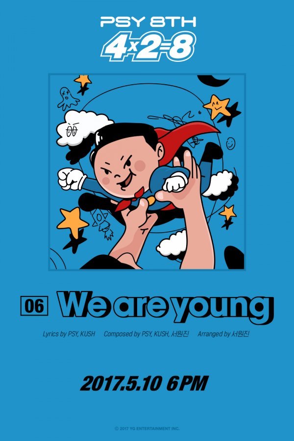 YG엔터테인먼트는 10일 오전 10시 공식블로그(www.yg-life.com)를 통해 싸이의 신곡 ‘We are young’, ‘팩트폭행’, ‘Rock will never die’, ‘기댈곳’, ‘오토리버스’의 일러스트 티저 포스터 5종을 공개했다.