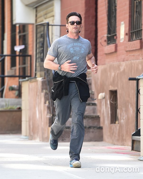 공개된 사진 속 휴잭맨은 트레이닝복 차림으로 뉴욕의 한 거리를 뛰어다니고 있다. 살짝 붙는 티셔츠를 입은 그의 탄탄한 근육이 눈에 띈다. 선글라스를 끼고 운동하는 그의 모습은 마치 영화의 한 장면을 연상케 한다.