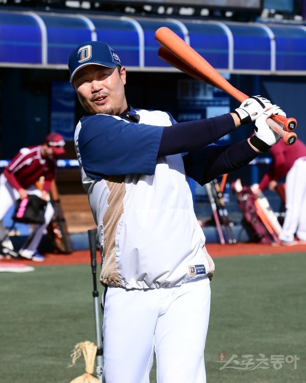 10일 창원 마산야구장에서 ‘2017 타이어뱅크 KBO리그’ NC 다이노스와 넥센 히어로즈의 경기가 열린다. 경기전 NC 이호준이 타격훈련을 하고 있다.