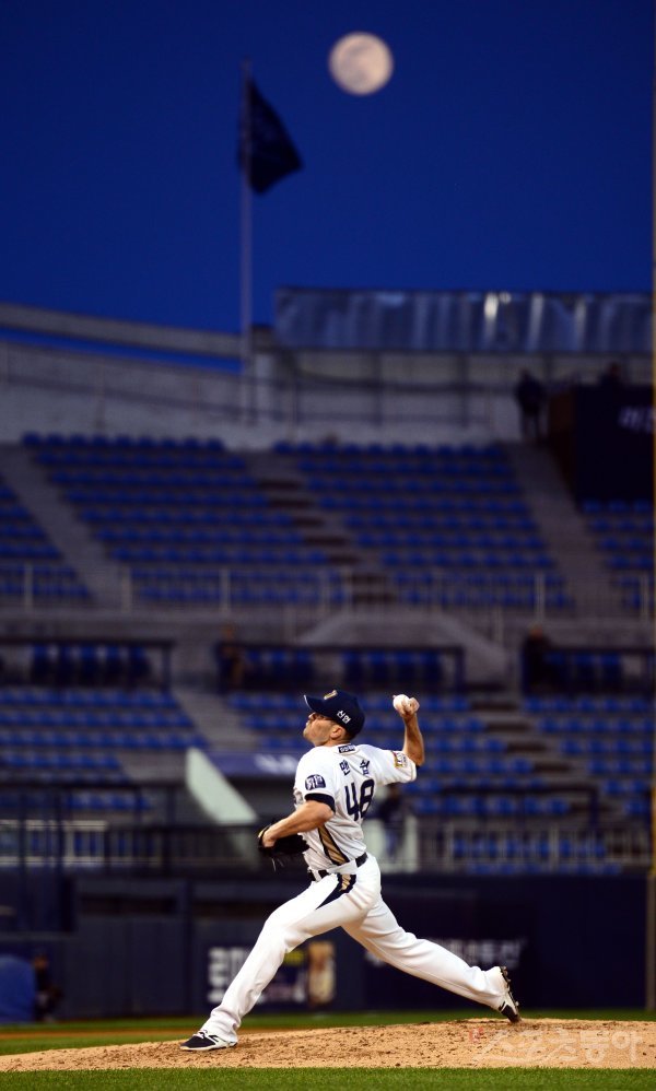 10일 창원 마산야구장에서 ‘2017 타이어뱅크 KBO리그’ NC 다이노스와 넥센 히어로즈의 경기가 열렸다. NC 선발투수 맨쉽이 힘차게 볼을 던지고 있다.