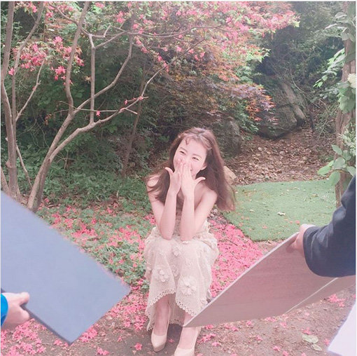 배우 정유미가 화사한 화보 촬영 현장을 공개했다.