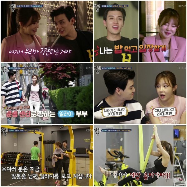 정작 두 사람의 고민은 따로 있었다. 결혼 이후 체중이 증가한 일라이는 “결혼식전에 빼야되는데”라며 걱정했고 일라이 부부는 당장 다음날부터 본격적인 웨딩다이어트에 돌입했다. 일라이네는 피트니스센터를 찾아 부부가 함께 할 수 있는 운동인 ’플라잉 요가’ 수업을 선택했다.