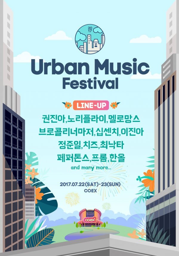 ‘도시, 그리고 당신의 음악’이라는 테마로 도심 속에서 즐기는 음악축제 ‘어반뮤직페스티벌 2017’이 오는 7월 22일, 23일 양일간 코엑스 그랜드볼룸과 오디토리움에서 개최된다.