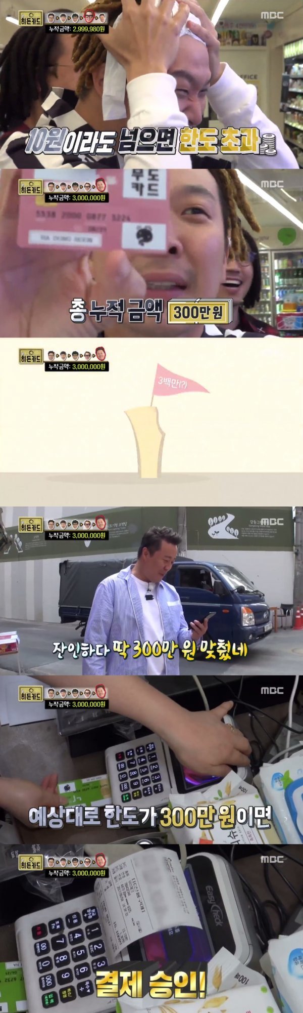 이때 양세형과 유재석, 하하가 순서대로 카드 한도를 소진하며 예상했던 300만원의 누적금액을 완성시켰다. 이에 다음 차례가 된 정준하와 박명수는 좌절했다.