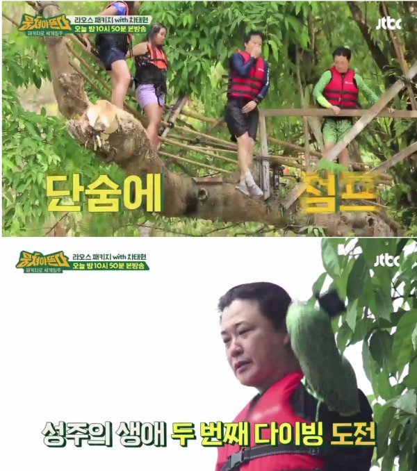 이를 지켜보던 예능계 입수 전문가 차태현은 조금의 망설임도 없이 높은 나무로 올라갔다. 이어 그는 자로 잰 듯 깔끔한 입수를 보여줘 출연진들과 주변 외국 관광객들을 놀라게 했다.