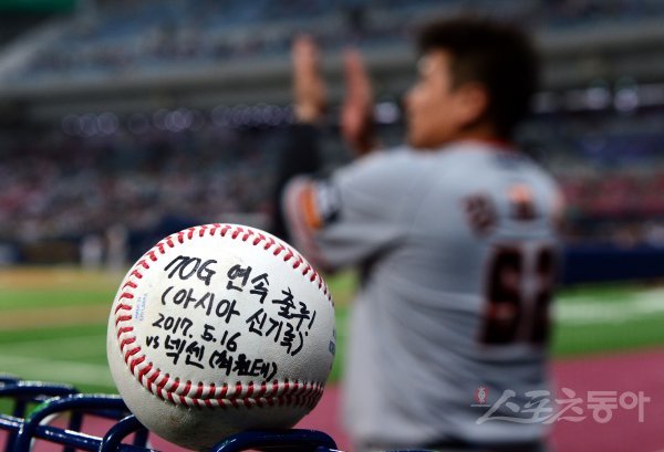 김태균 ‘70경기 연속 출루, 빛나는 기념구’